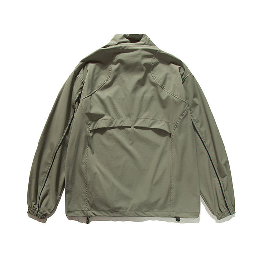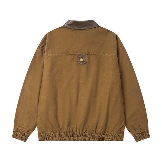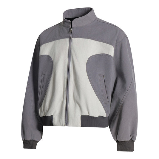 Vintage Patchwork Color-Blocked Stand Collar Jacket Unisex Loose Casual Coat Couple Sporty Outerwear