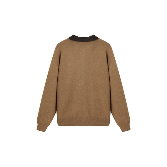Soft Knit Cardigan with Color-blocked Stand-up Collar Cozy Oversized Sweater
