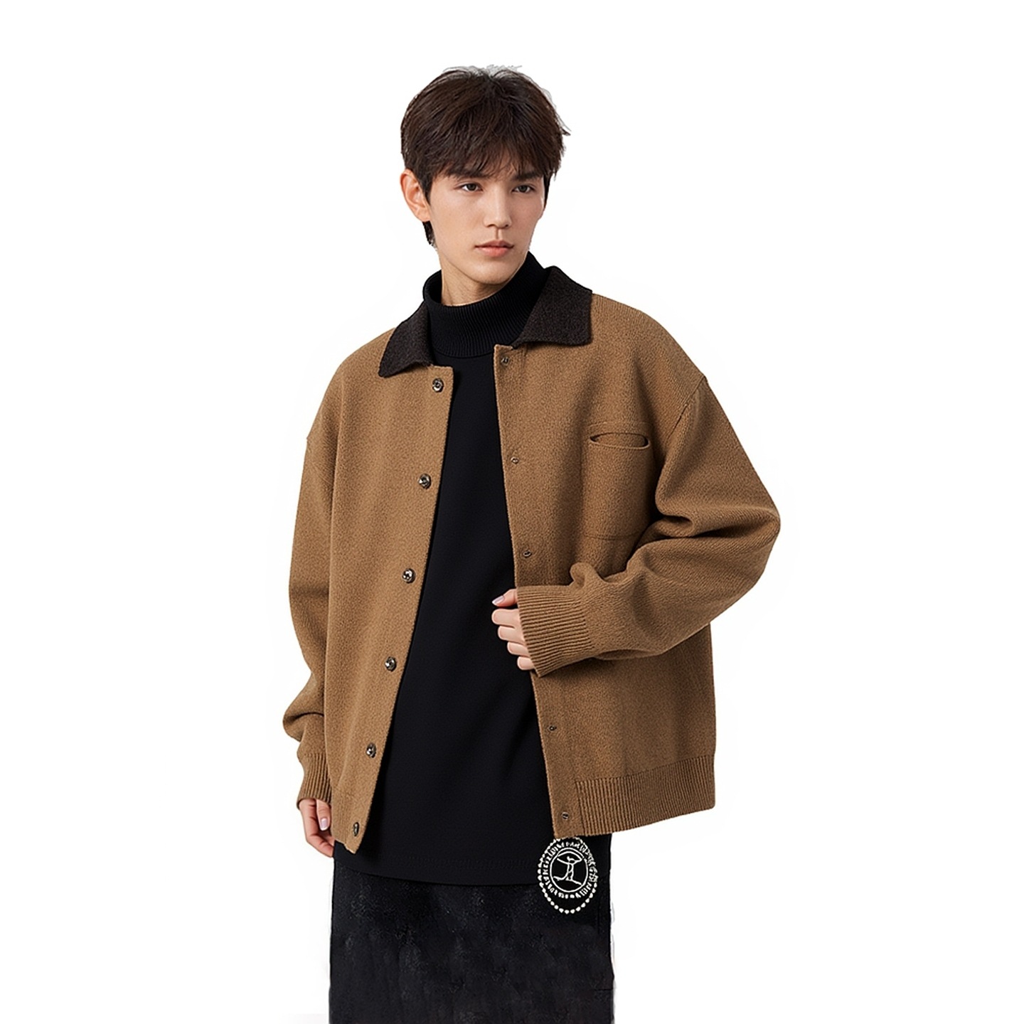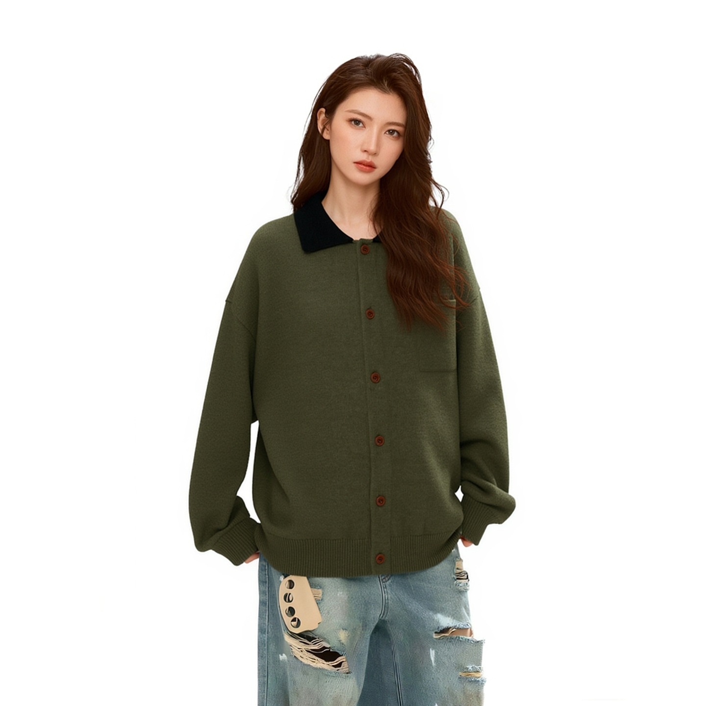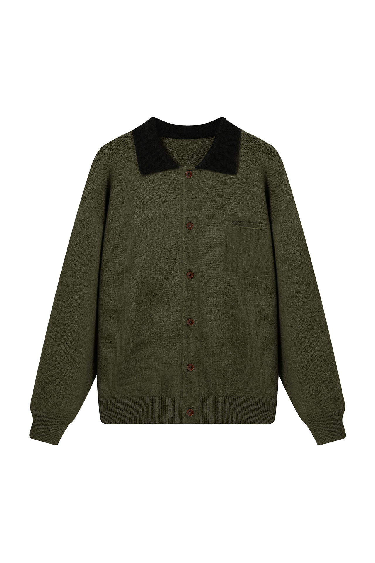 Soft Knit Cardigan with Color-blocked Stand-up Collar Cozy Oversized Sweater