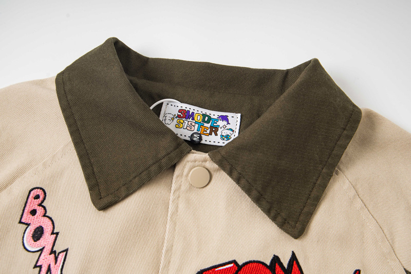 Style Trendy Cartoon Embroidered Patchwork Jacket, Unisex College Style Loose BF Couple Outwear